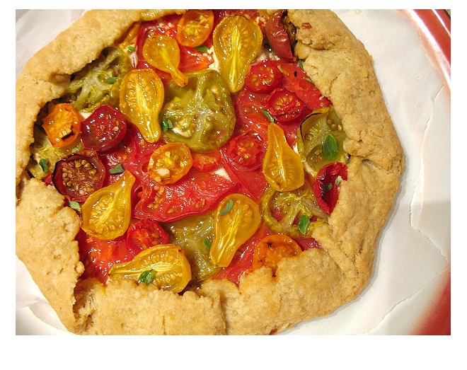 Roll the dough into a 13 inch circle, fold in half & transfer to a baking sheet lined with parchment paper. Spread the bread crumbs on the pastry leaving a 2 inch border. Layer the tomatoes, shallot, goat cheese & thyme on the bread crumbs. Fold the edges of the crust over leaving the center uncovered. Bake in a 375 oven for 30 to 40 minutes until the crust is golden brown. Cool at least 10 minutes & sprinkle with the fresh basil leaves chopped. Cut into wedges & serve.